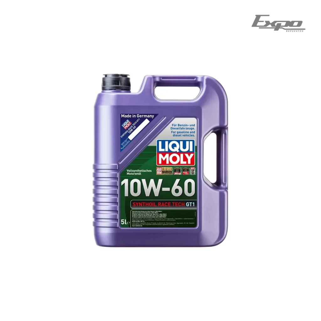 El Aceite Liqui Moly 10W-60 Synthoil Race Tech GT1 en presentación de 5 litros es un lubricante sintético de alta gama, desarrollado especialmente para motores de alto rendimiento que trabajan en condiciones extremas, incluyendo competencias y uso intensivo.